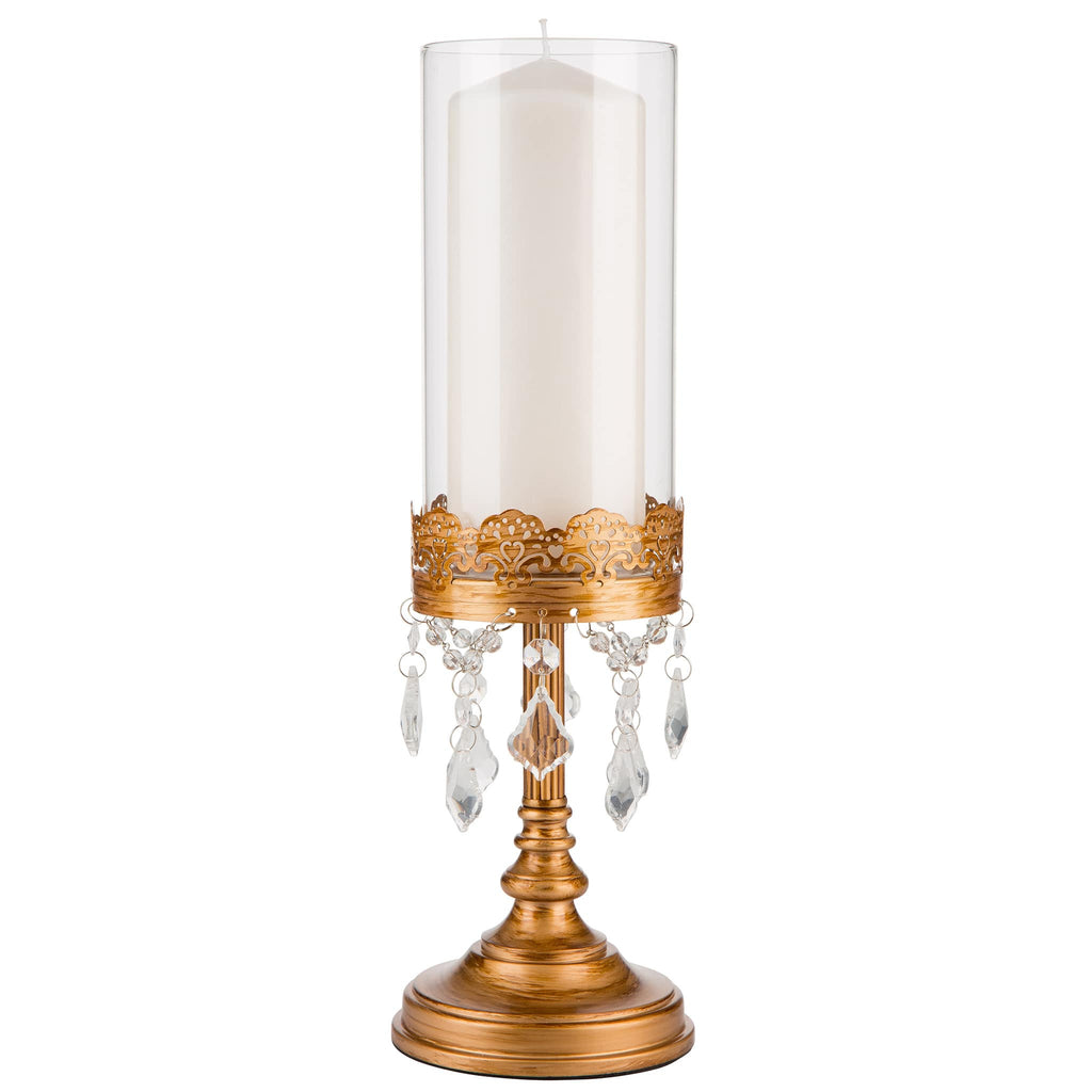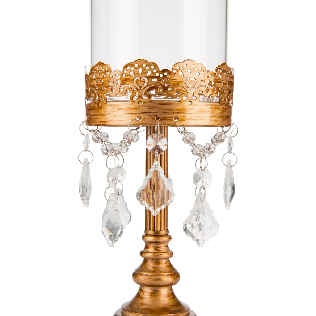 Crystal-Draped 15" Hurricane Candle Holder | Gold | Sophia Collection
